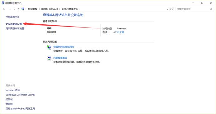 4.点击“更改适配器设置”快捷链接