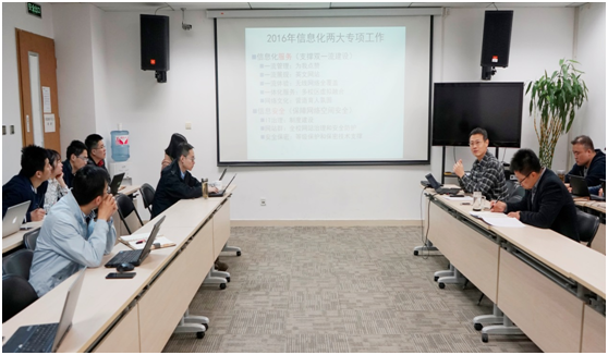 李云春副主任首先解读了网络信息中心2016年工作要点,提升信息化服务水平,推广“为我点赞”系统,打造学校英文网站群,推进无线网络全覆盖;建设智慧校园,服务多校区融合发展;强化网络信息安全,支撑学校“双一流”建设和保障网络空间安全。