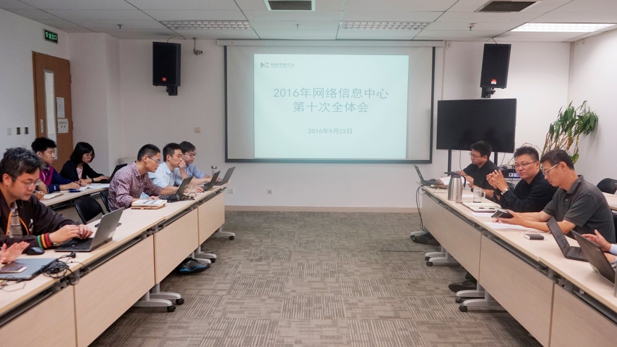 2016年9月23日上午9点,网格信息中心在新主楼G座221会议室召开了2016年中心第十次全体会议。全体人员参加了会议,会议由中心副主任李云春主持。