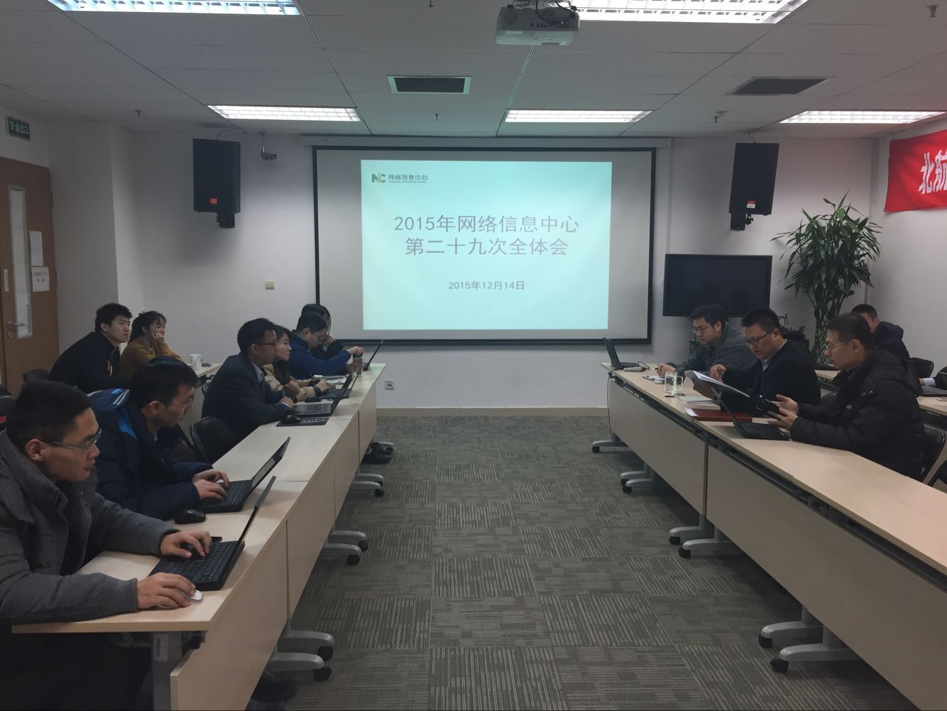 2015年12月14日上午9时,网络信息中心第二十九次全体会在新主楼G221举行,中心全体员工参加了议,李云春副主任主持会议。