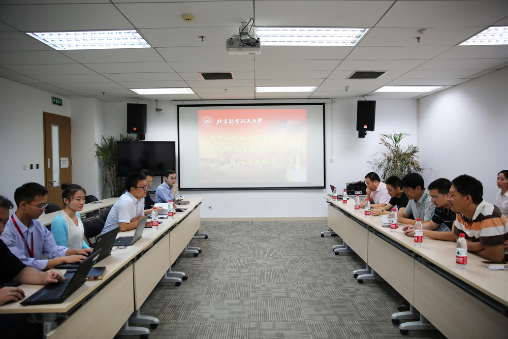 2015年9月7日上午,北京青年政治学院信息化办公室主任徐志立一行9人莅临北航网络信息中心调研交流,网络信息中心张建华主任、李云春副主任在G221会议室接待了来宾,中心相关工作人员参加座谈交流。