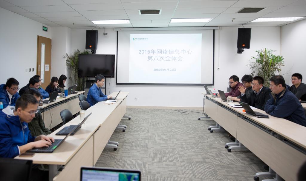 2015年4月3日上午,网络信息中心在新主楼G221会议室召开第八次全体大会。会议由李云春副主任主持,中心全体工作人员参加会议,每位参会同事汇报自己相关工作。