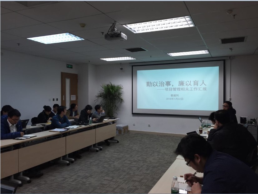 随后霍部长给大家介绍了廉政风险防控三个体系建设的工作要求,以及2015年试点单位的推广计划,接下来就2014年部门信息化报告的框架和内容与全体同事进行了探讨,交流。 所有的参会人员对霍部长的汇报致以热烈的掌声,大家各抒己见,就自己日常项目管理中遇到的困难等发表了各自的看法,与此同时也对项目管理部提出了许多可执行性的宝贵意见。