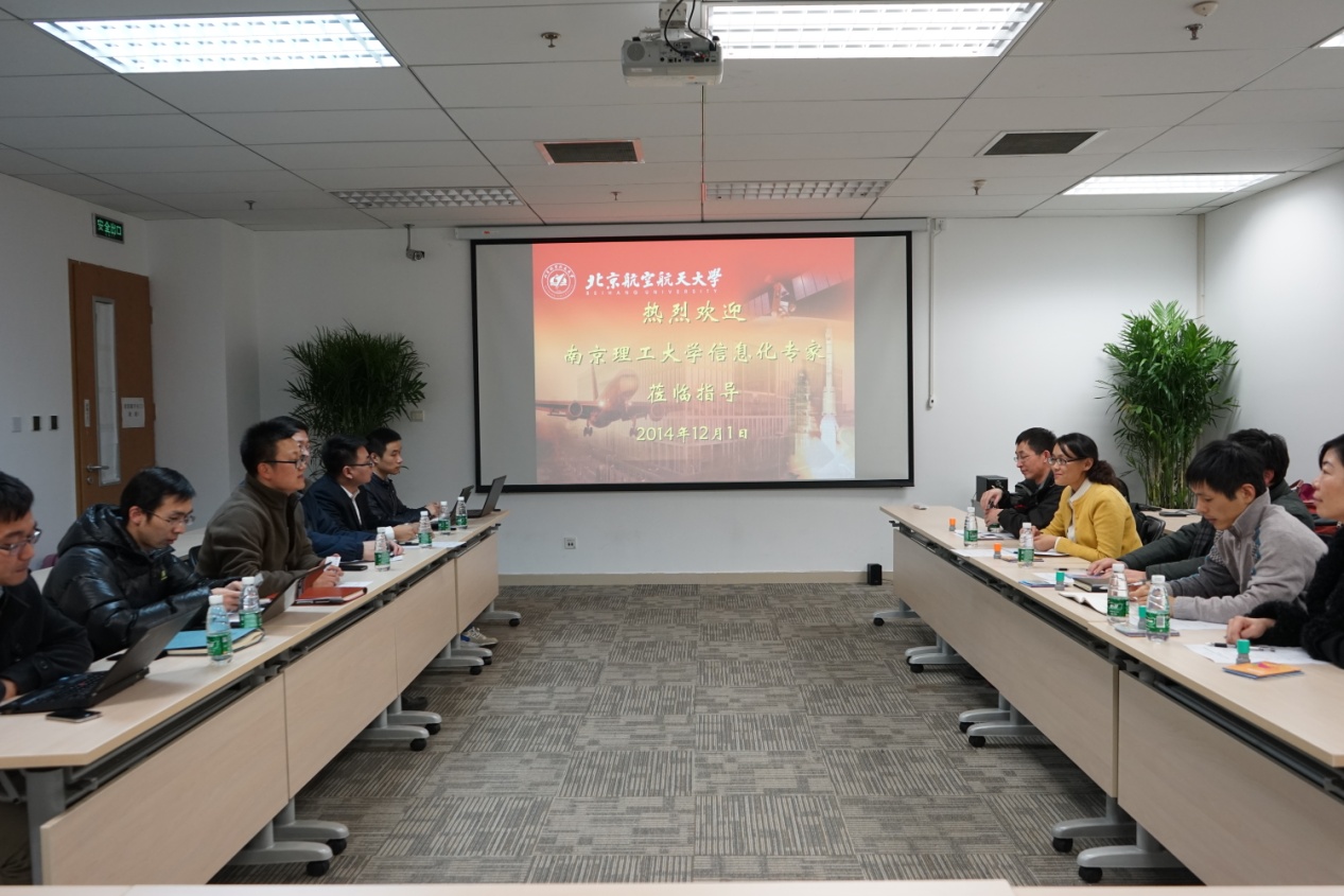 南京理工大学信息化专家首先参观了我校的核心机房,并观看了北航信息化专题片《智慧北航》。网络信息中心主任张建华结合互联网时代的特点,介绍了互联网与教育的关系、我校信息化系统建设现状和目标、ihome网络社交平台运营情况和特色服务、课程中心和虚拟数据系统的总体情况。阐述了信息化建设的理念和对高速发展互联网时代的反思。他提倡组建高校信息化联盟,实现资源互通有无和信息化的开放共享。