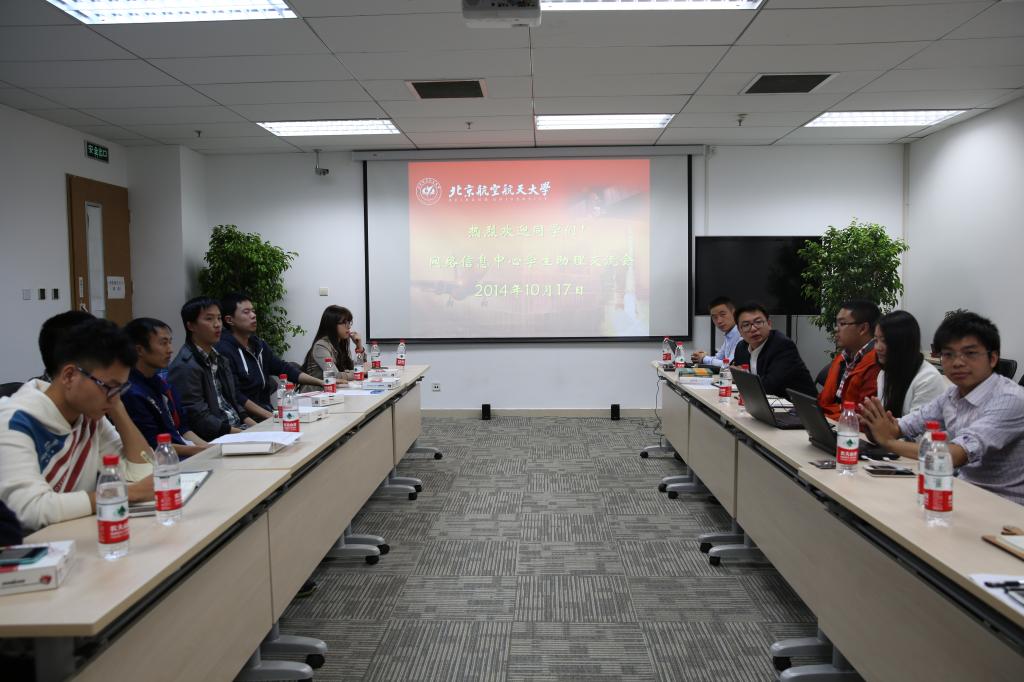 2014年10月17日晚6点,新主楼G座221会议室召开了一次别开生面的会议。这次会议由网络信息中心发起,众多博学多才的学生报名参加,旨在交流学校网络信息中心的发展思路,聚集优秀学生人才。