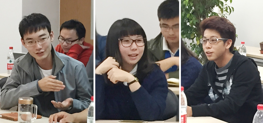 随后大家欣赏完北航iTV学生团队自主创作的招新宣传片后,顾广耀老师也回顾了自己第一次出国的新奇经历,激励同学们利用外出访学的机会开阔眼界。讨论和交流进一步展开,出访UIUC交流团的成员也开怀畅谈在美国的学习经历和生活见闻,其中当提到UIUC课堂上广泛使用的无线即时答题器iclicker时,交流团的成员争相表达对这一设备应用的赞许和可实践推广的建议,激起在场老师和同学的热烈讨论。