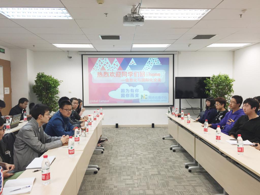 会议由网络信息中心主任张建华主持,出席本次会议的有计算机学院党委副书记顾光耀老师,国际交流合作处孔祥明老师,以及北航暑期赴伊利诺伊大学香槟分校(UIUC)交流团的部分成员和NIC的部分老师及学生助理。