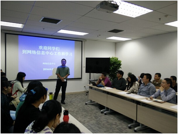 出席这次培训会的有网络中心张建华主任,周林志老师,胡楠老师,王凯老师和马晓东老师等。培训会由胡楠老师主持。首先张主任对新同学表示欢迎,张主任提到:“在网络中心同学们可以学到很多相关的技术,为北航师生服务,与此同时,大家还可以拿到适当的补贴,减轻家里的负担。”张主任还讲述了当年在学校勤工助学的故事,让大家觉得很亲切。