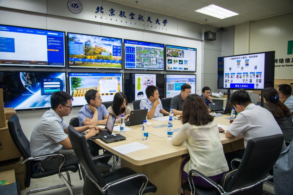网络信息中心主任张建华对哈工大网络与信息中心各位同仁的到来表示热烈欢迎,并带领网络信息中心相关工作负责人就网络基础设施建设、虚拟数据中心建设、网络信息安全保障体系建设、大OA建设、移动门户建设、网站群建设、信息门户、统一身份认证、统一数据平台建设等工作进行交流。