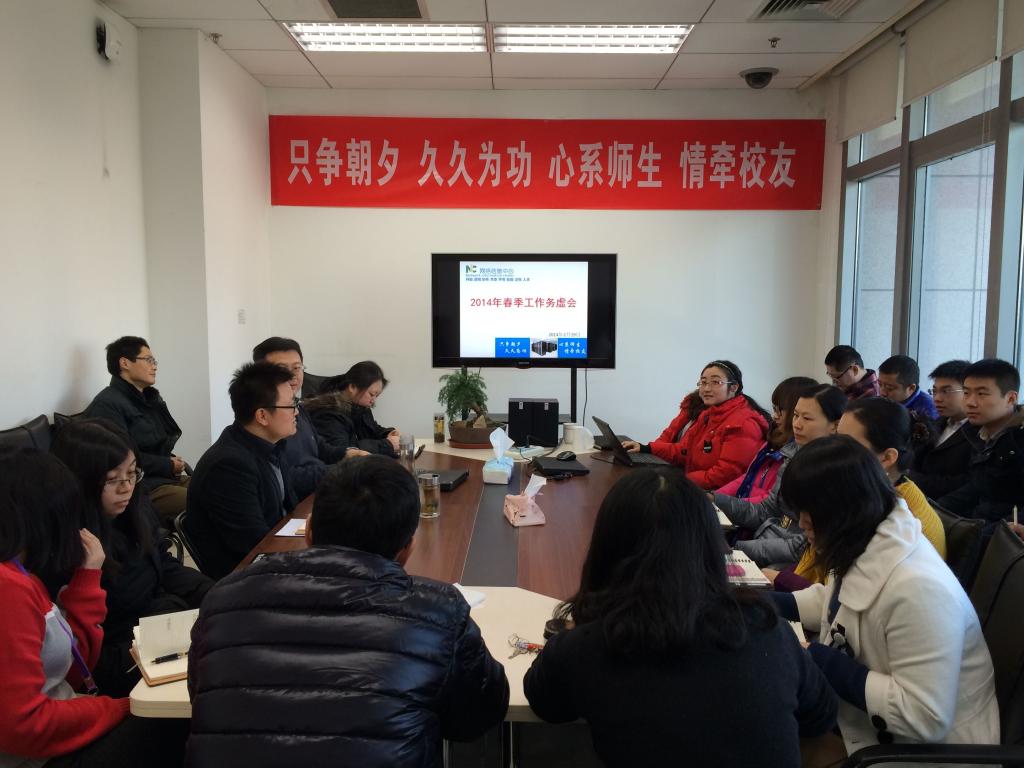 在阳光明媚的2月19日,网络信息中心启动新学期整体工作。利用19日、20日两个整天召开全体人员工作务虚会。带着家乡的温暖,带着亲朋的祝愿,全体人员齐聚,共同研讨2014年工作。